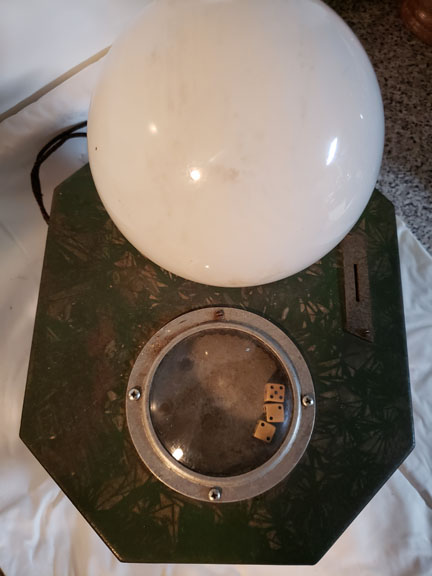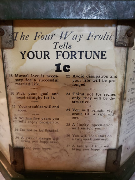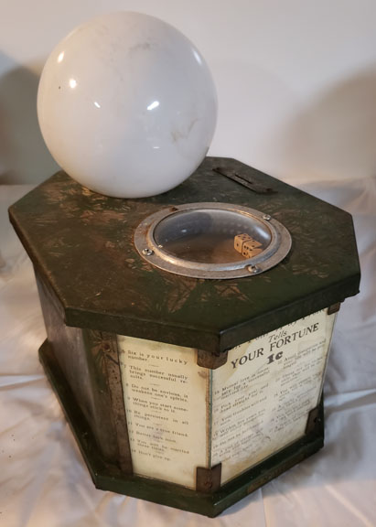 AD Lee made this trade stimulator in 1932. What is remarkable about this machine is that it is powered by electricity. This was significant for the time period, as much of America outside of the cities was still without reliable power. The globe on top is always lit when the machine is plugged in so to attract attention and pennies.