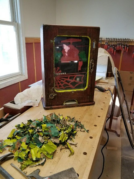 to be a mahogany cabinet. The paint had done a remarkable job of preserving the